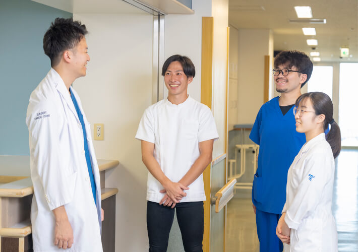 東海大学医学部消化器外科では、上部消化管班、下部消化管班、肝胆膵班の3つの班に分かれており、各班を、小柳和夫、山本聖一郞、岡田健一の3名の教授が責任者として臨床・教育・研究業務を担当しています。専門性の高い診療をそれぞれの班が行うと共に、連携を密にして消化器疾患の外科治療を一丸となって行い、患者様に最良の医療を提供することを目指しています。